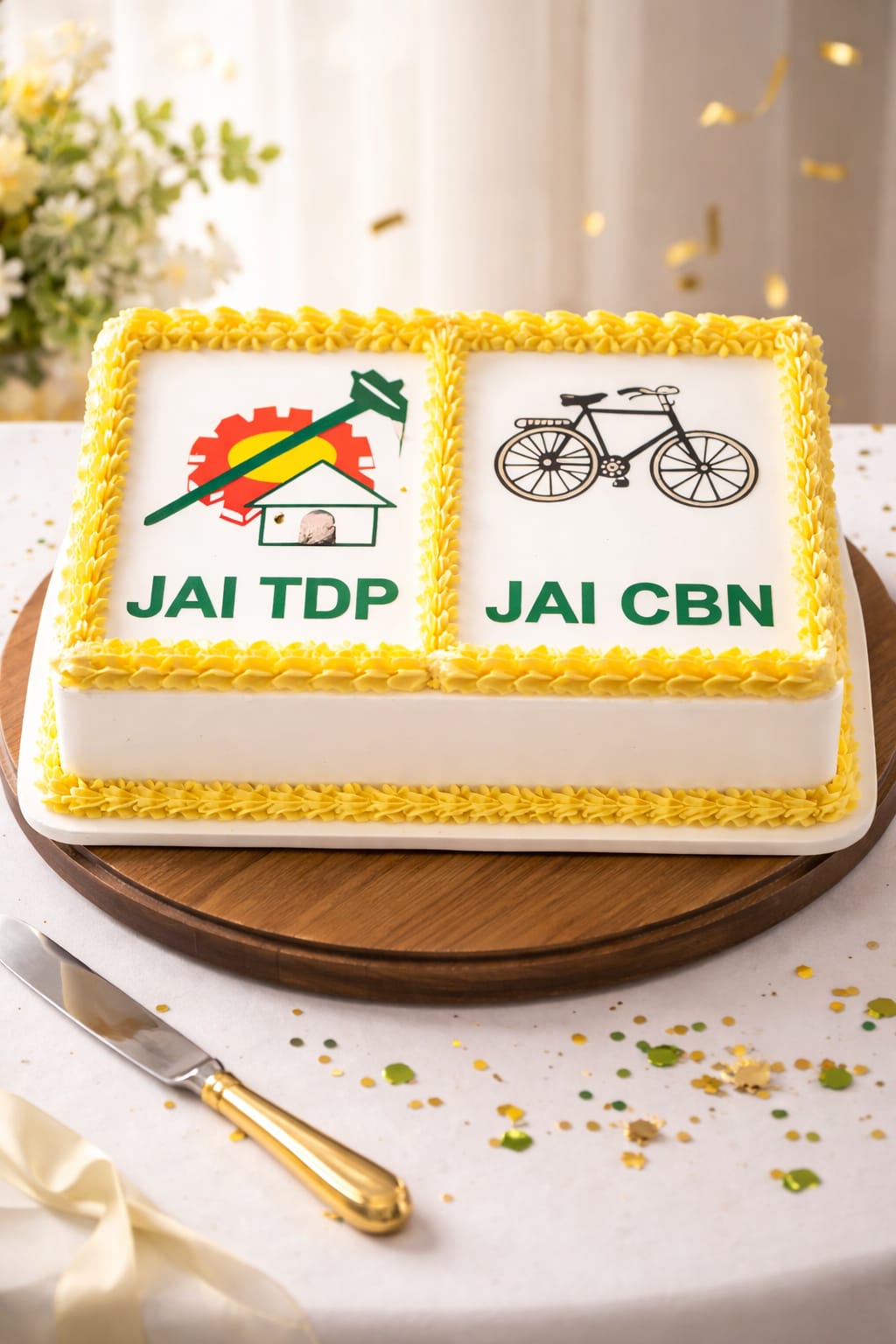 A tribute to democracy and Telugu pride! This full slab sheet cake was specially crafted to celebrate the victory of Chandrababu Naidu as Chief Minister of Andhra Pradesh. Adorned with the iconic TDP (Telugu Desam Party) and CBN symbols in vibrant party colors, this cake brought together the Telugu community in Canada to honor their…